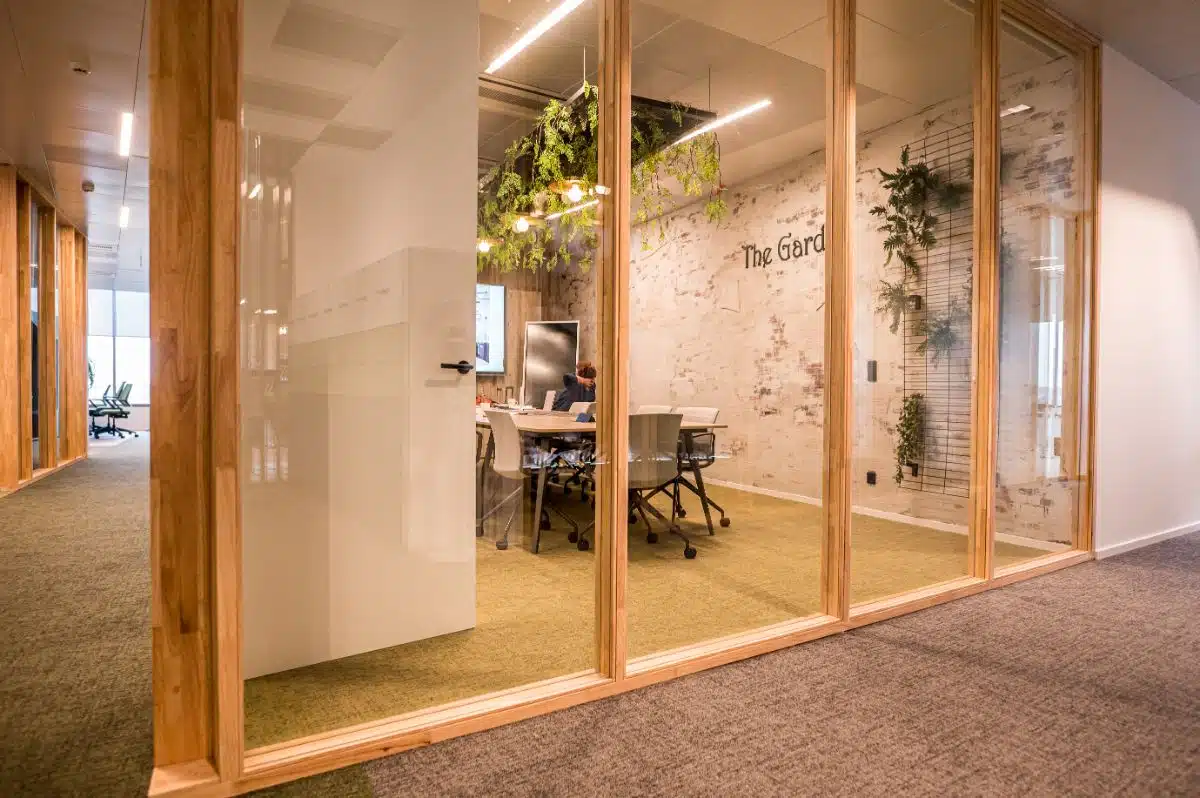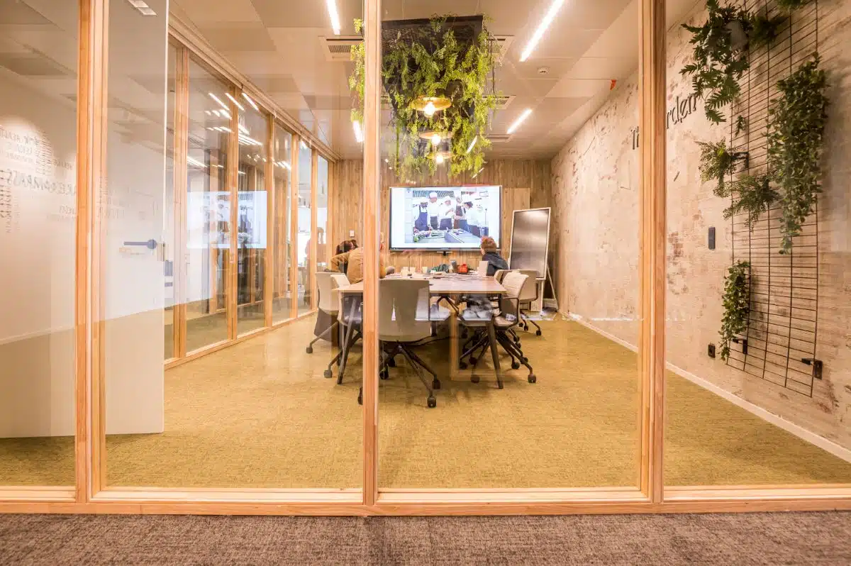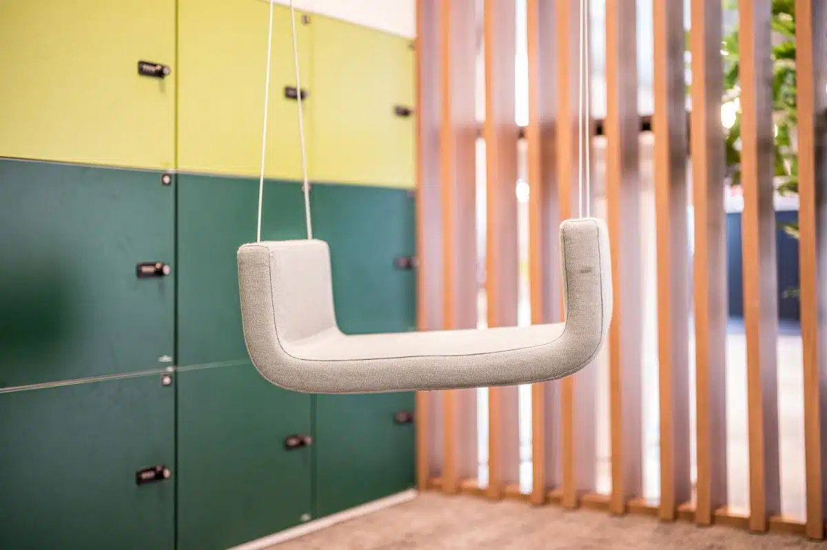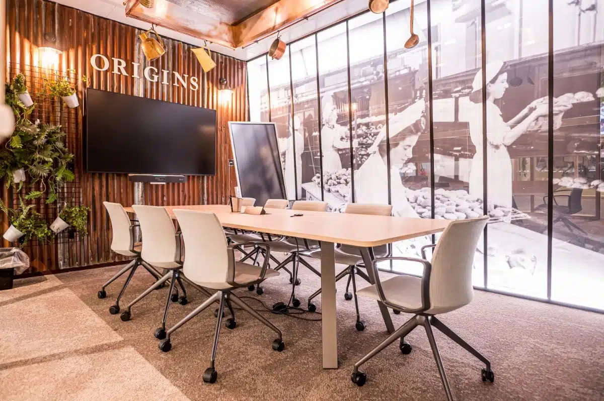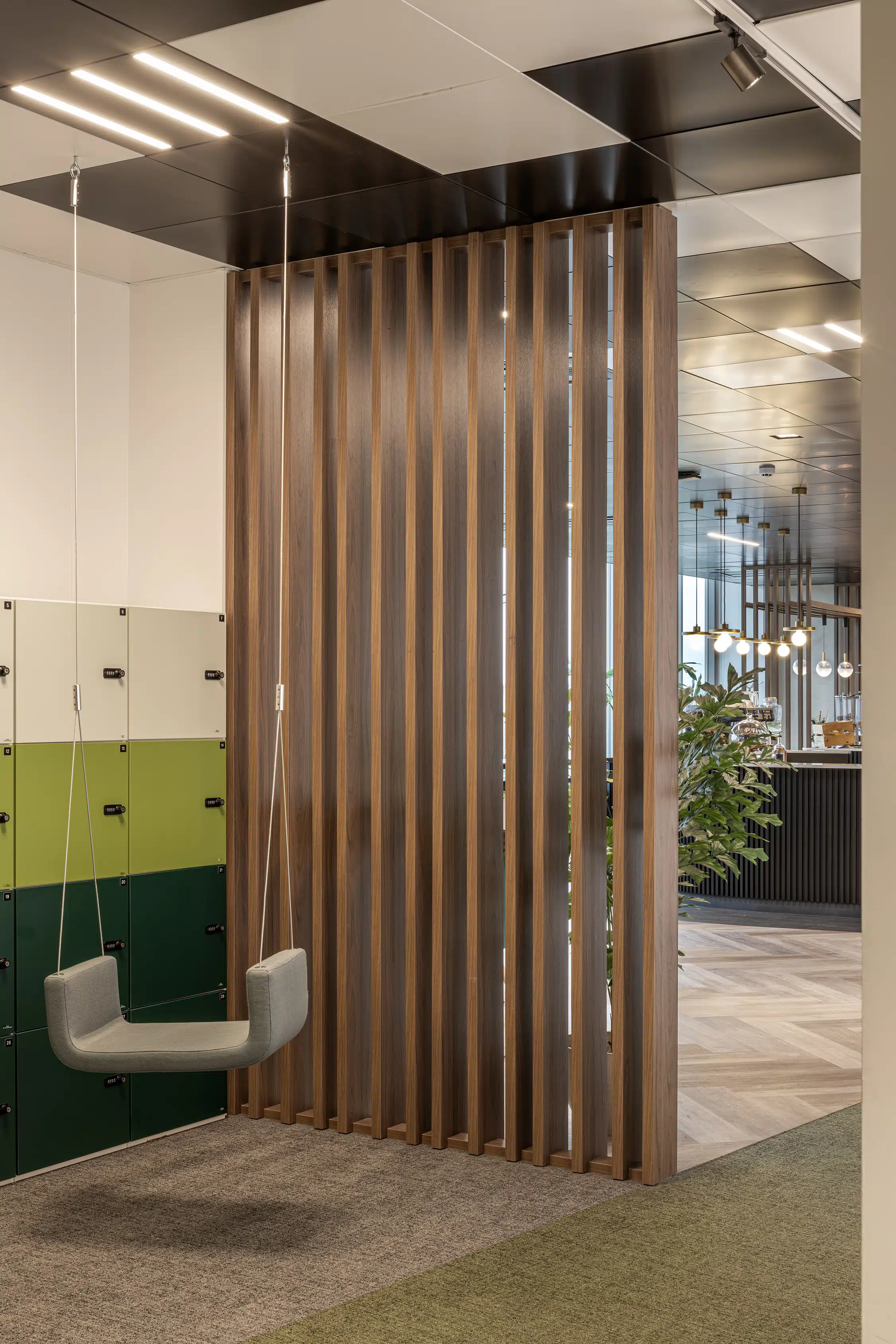 Wij hebben getracht om het kantoor een eigen ziel te geven met subtiele verwijzingen naar de cateringactiviteiten en de waarden die Compass hanteert. Daarbij springen de gethematiseerde vergaderruimtes in het oog alsook de op maat ontworpen phone booths. We wouden geen steriele kantoorruimte, daarom onze keuze voor warme neutrale materialen en kleurtinten met hier en daar een fris kleuraccent.