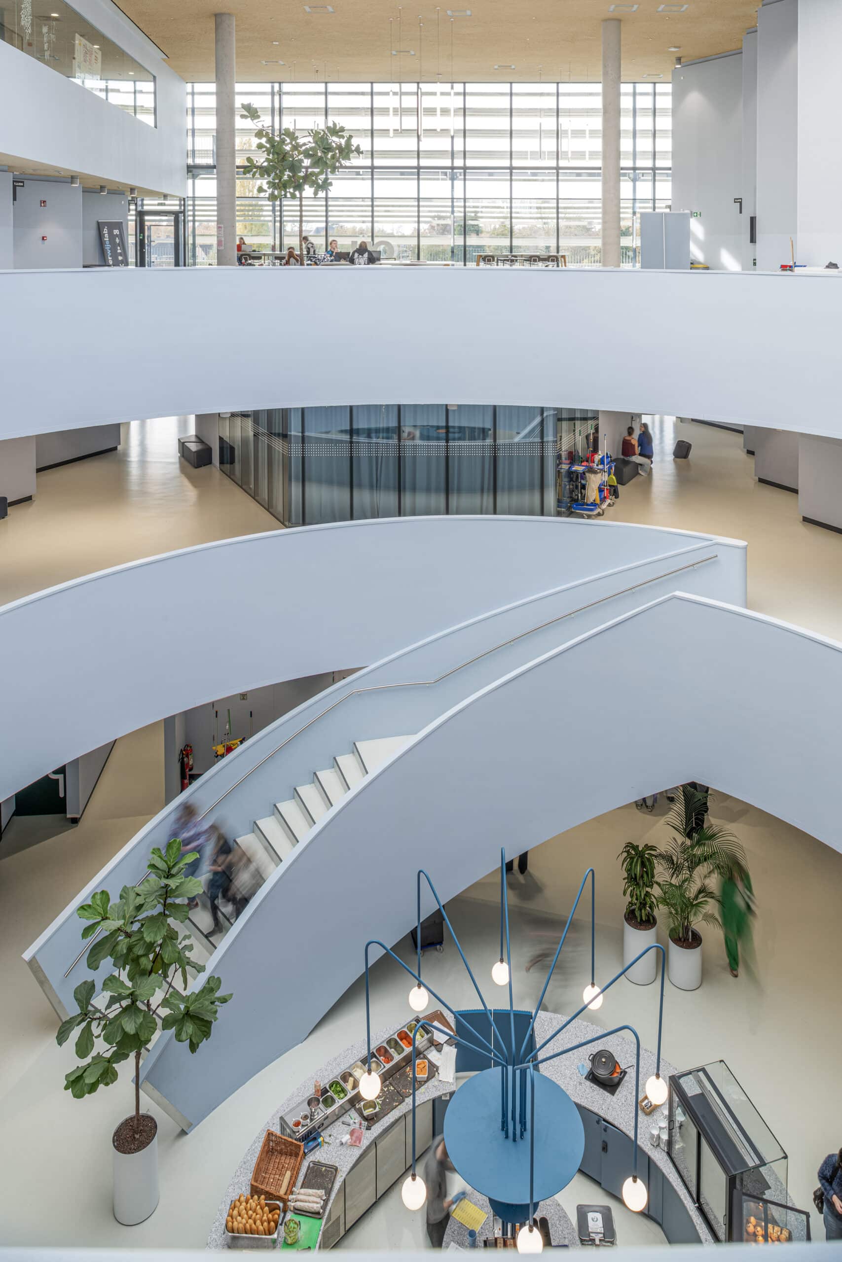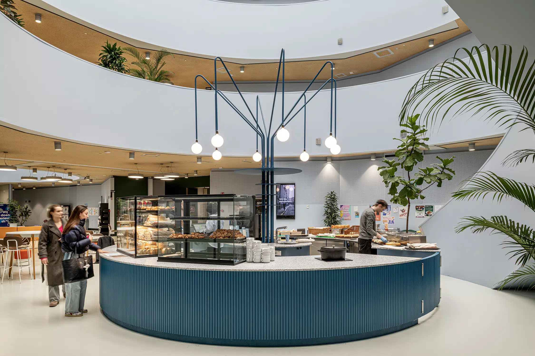 Het ontwerp van de nieuwe koffiebar in het atrium vormt het kloppende, centrale hart van de hogeschool. Door de strategische positionering in het open atrium ontstaat een natuurlijke dynamiek die studenten en docenten samenbrengt in een omgeving die ademt, inspireert en verbindt.