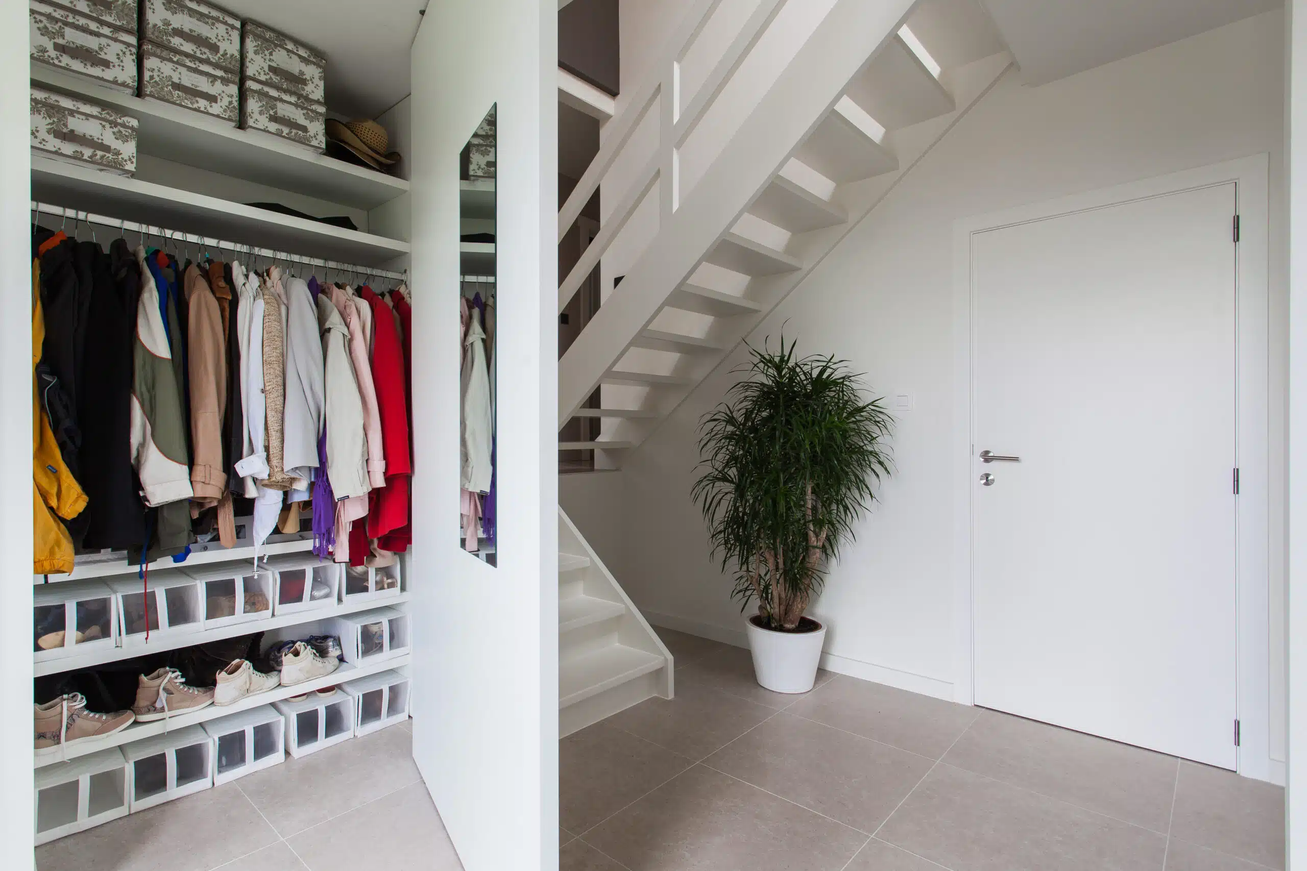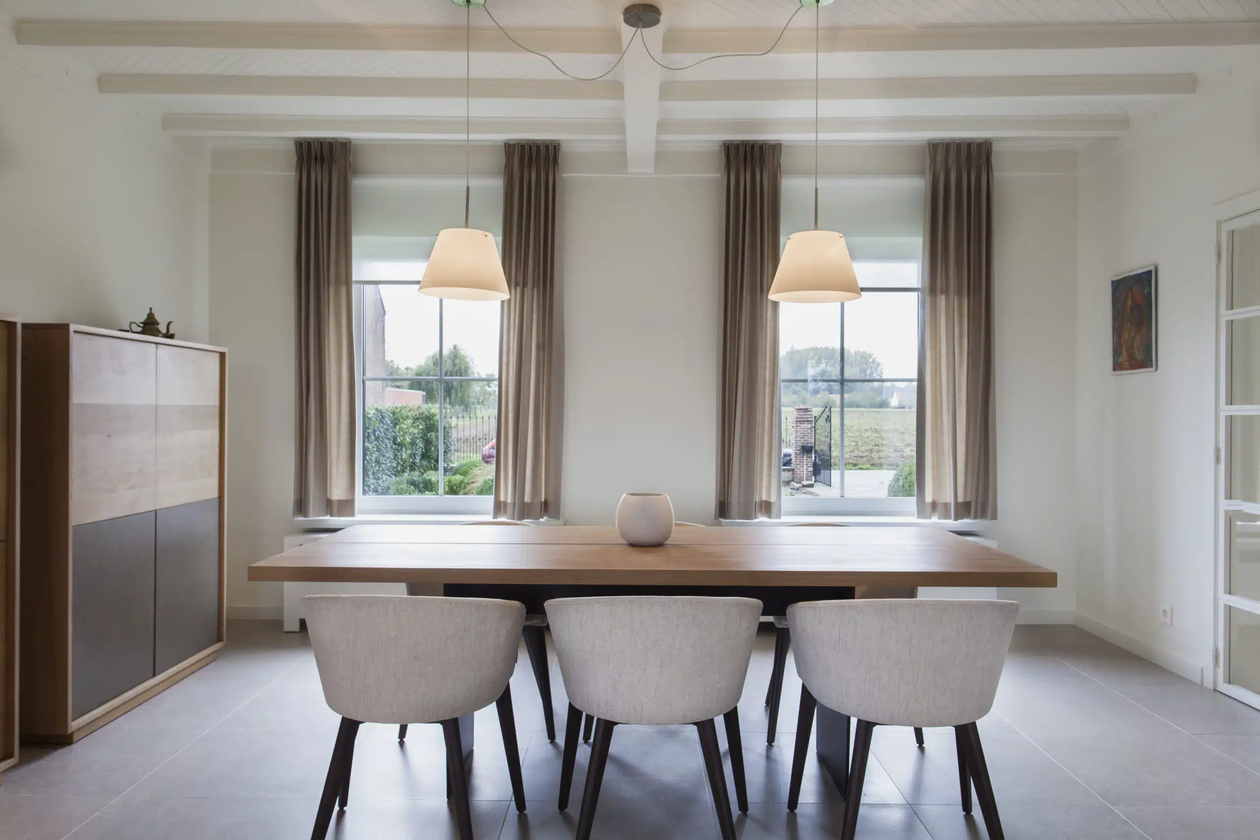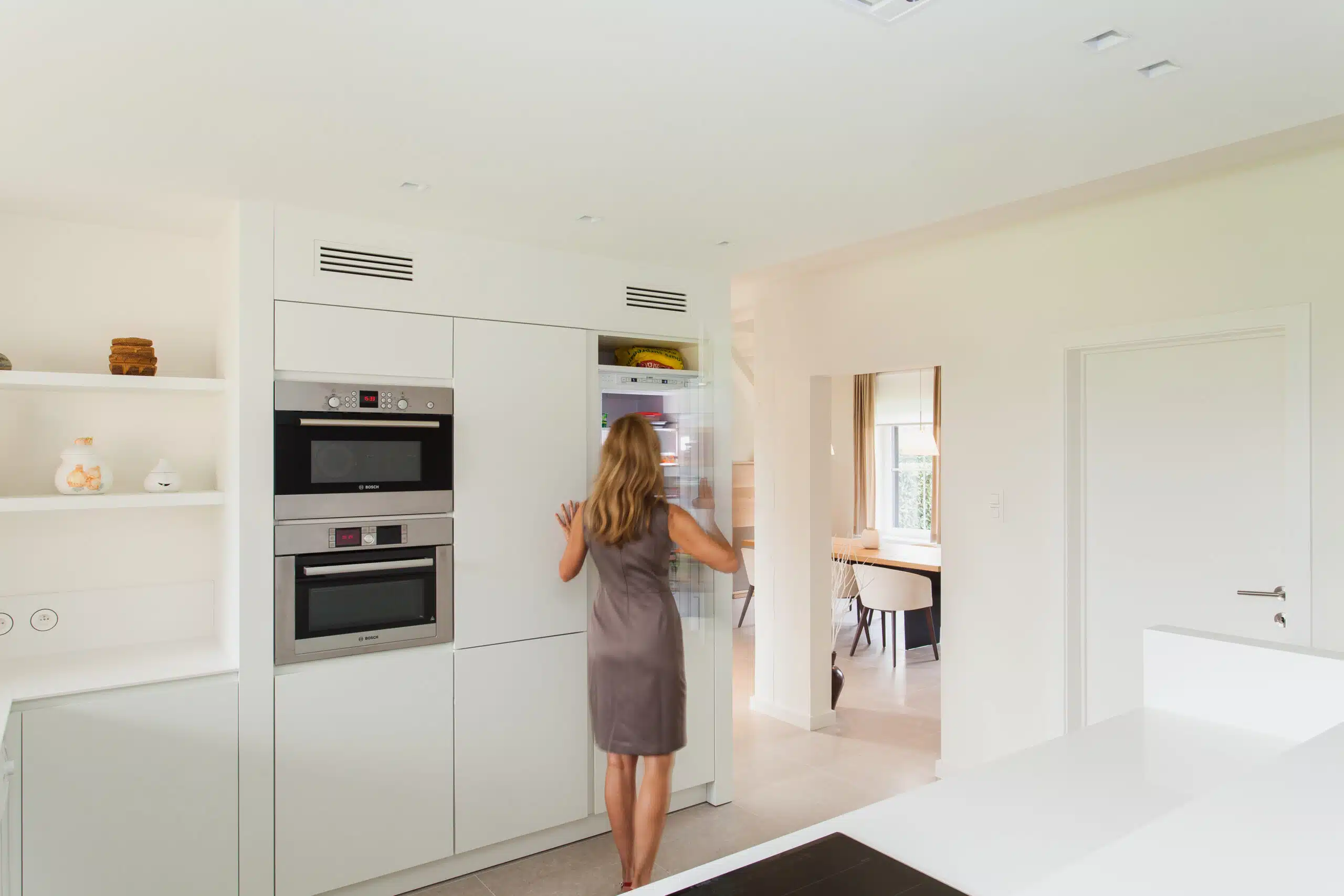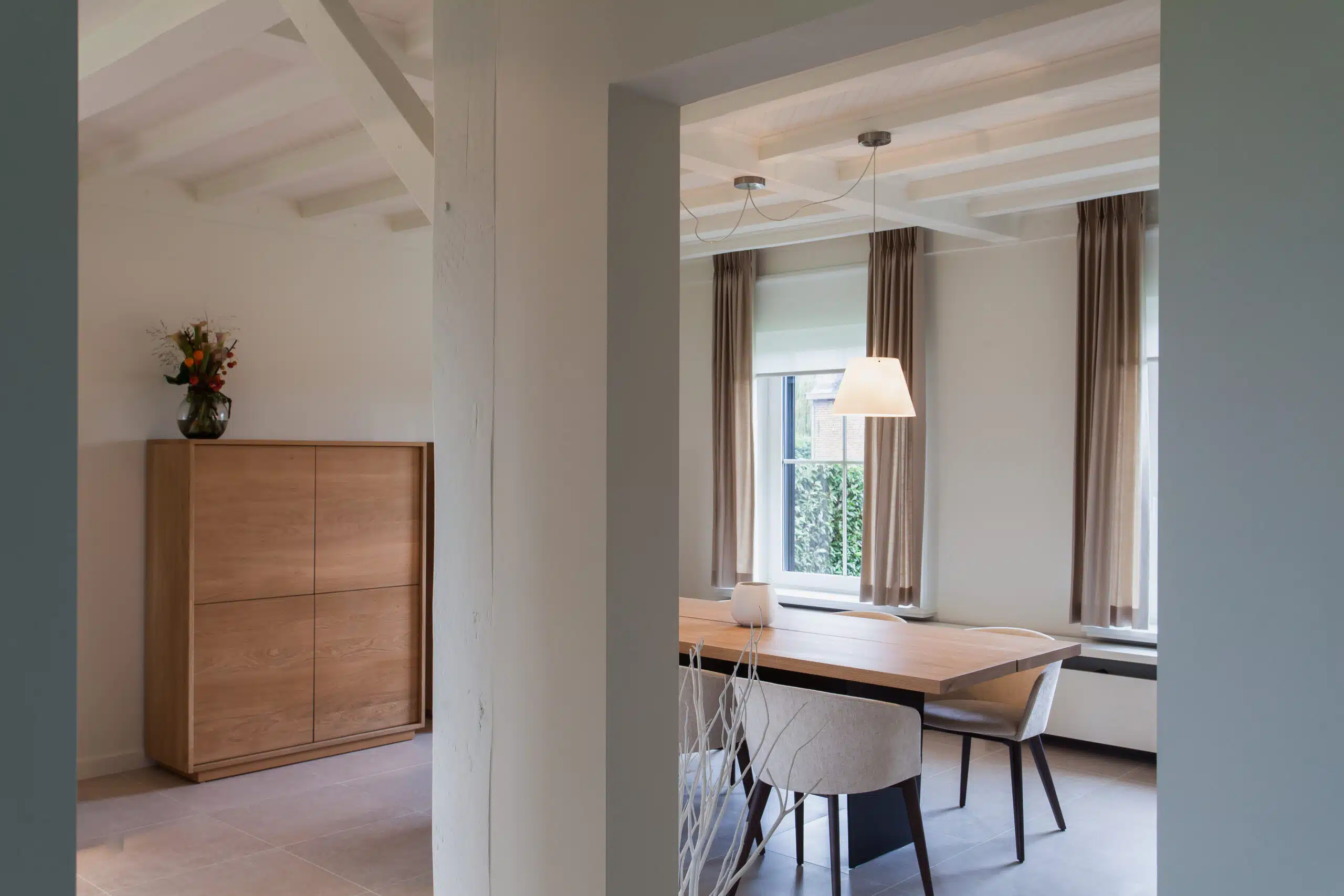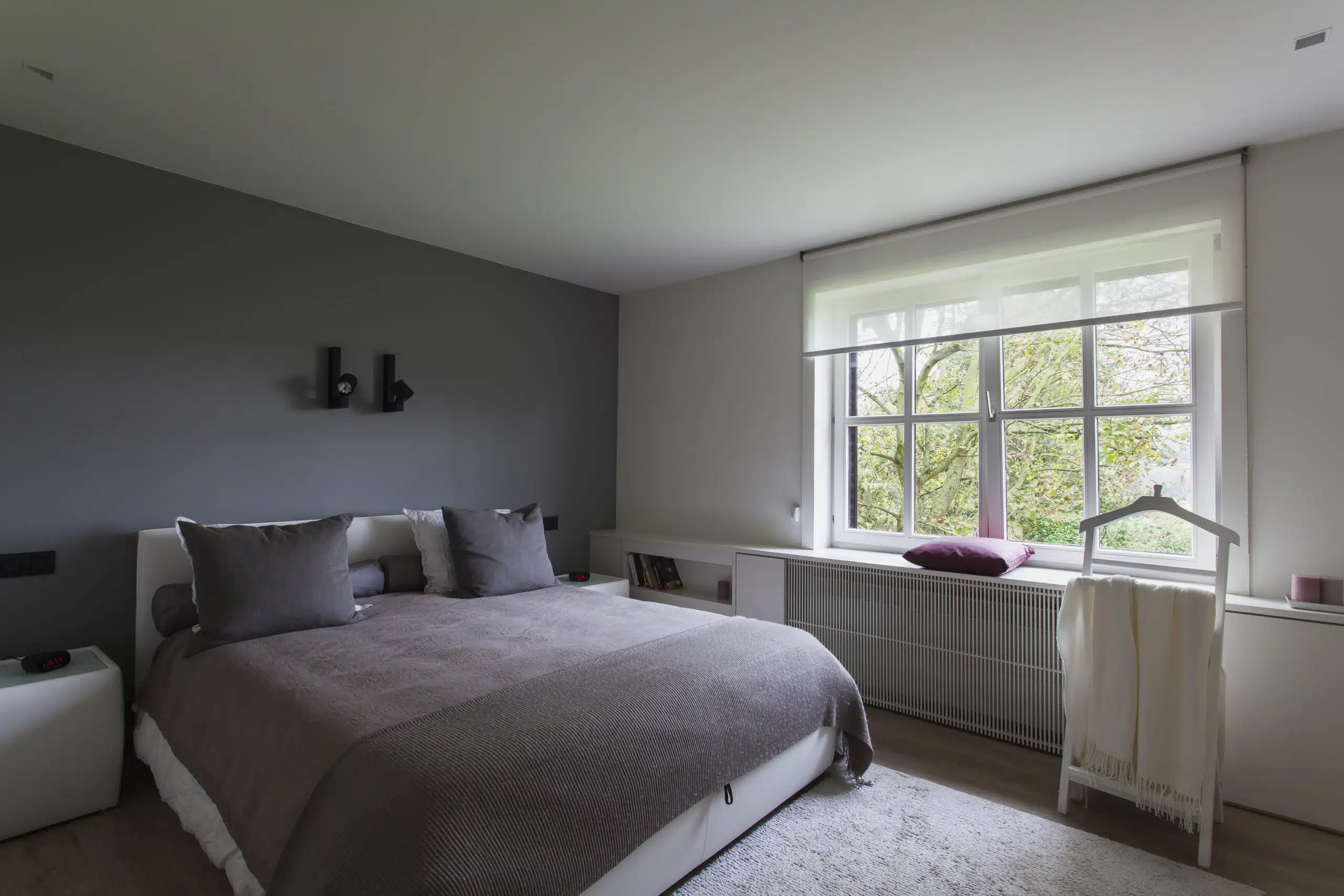 In de landelijke gemeente Asbeek nabij Asse, kreeg interieurarchitect Peter Roekens de eer om een vrijstaande woning te verbouwen. Het volledige interieur, waaronder de leefruimte, keuken, bad- en slaapkamers werden grondig aangepakt. Het bestaande interieur was door de vele hout-elementen donker en gesloten. Het was een ware uitdaging om het interieur een meer open karakter te geven. Om een betere inval van natuurlijk licht te bekomen werden alle buitenschrijnwerken vernieuwd en werd het maat-en schilderwerk uitgevoerd in een lichte basiskleur. Verloren hoekjes kregen een herbestemming en werden ingericht tot vestiaire en dressing. In de leefruimte verdween een grote sierschouw. Deze maakte plaats voor een nieuwe doorgang, een haard en een tv-en boekenkast. De sfeer van het interieur werd op smaak gebracht door P.R. interieurarchitect met een zorgvuldig gemaakte selectie van meubilair, decoratie en verlichting.